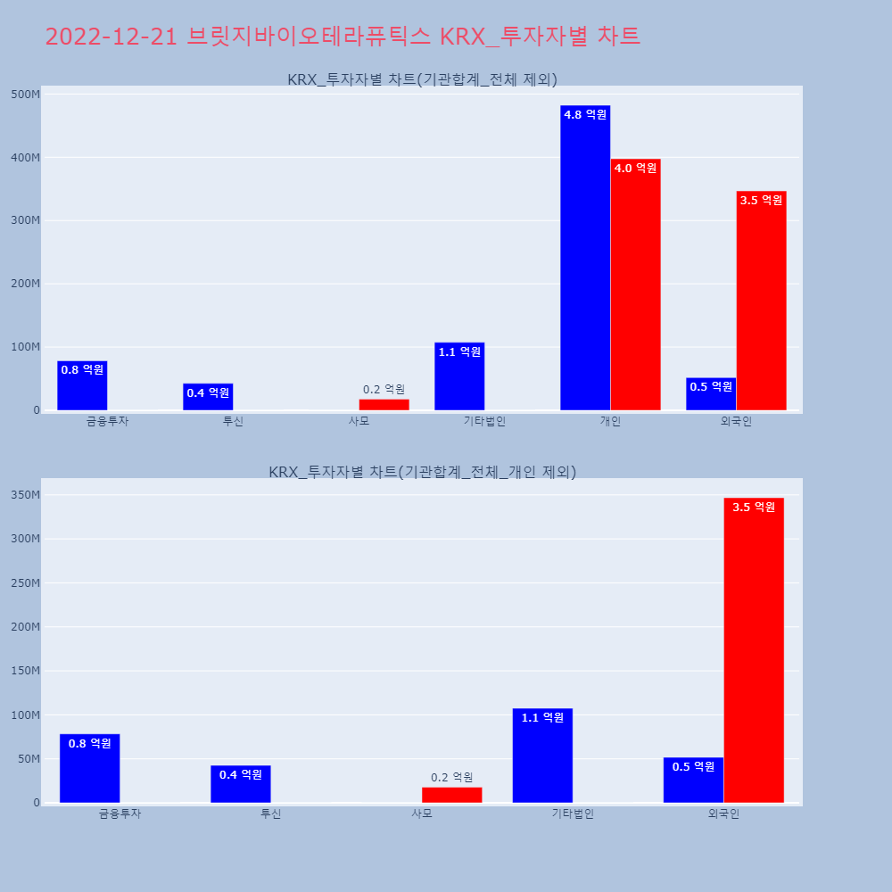 | 2 | [장중수급포착] 브릿지바이오테라퓨틱스, 외국인/기관 동시 순매수… 주가 [서울=뉴스핌] 로보뉴스 = 21일 10시 15분 현재 | 뉴스핌 | 브릿지바이오테라퓨틱스 | 2022-12-21 10:27:19 |