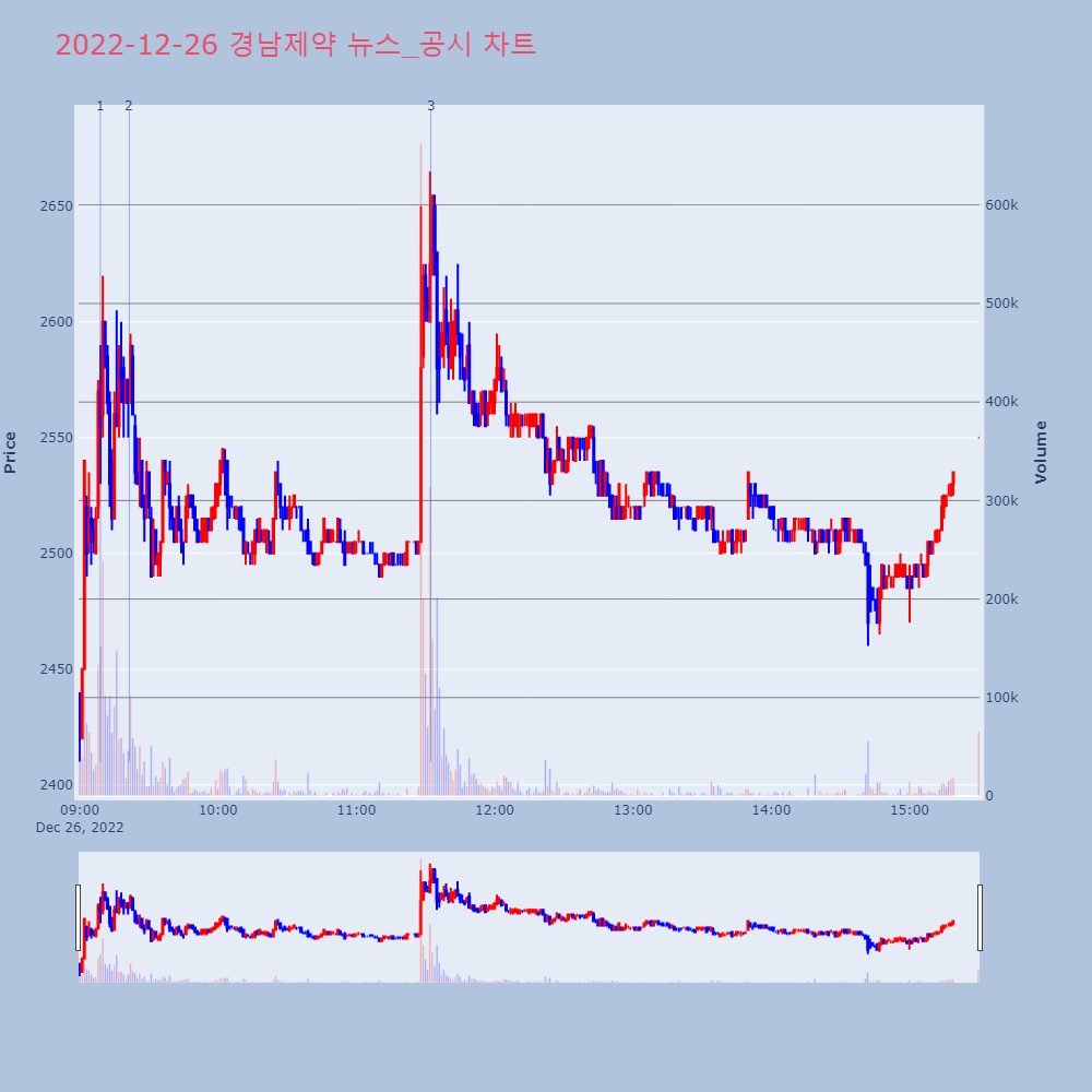 | 3 | [장중수급포착] 경남제약, 외국인 15.97만 주 대량 순매수... 주가 +11.94%[서울=뉴스핌] 로보뉴스 = 26일 11시 30분 현재 | 뉴스핌 | 경남제약 | 2022-12-26 11:32:19 |