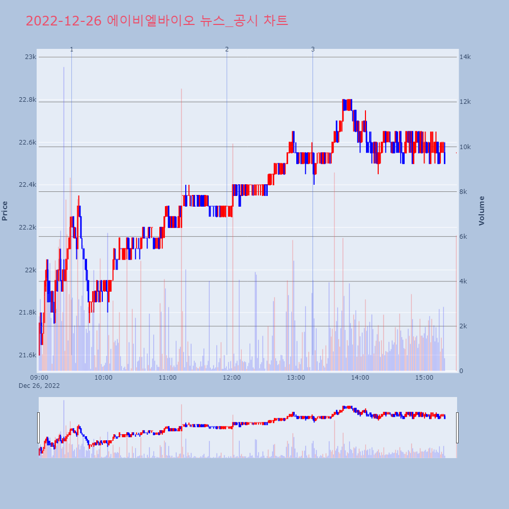 | 3 | 에이비엘바이오,"내달 발표 담도암 치료제 2상결과 자신"- 앞선 5월 2상 중간 데이터서 ORR 41.6% 확 | 이데일리 | 에이비엘바이오 | 2022-12-26 13:15:48 |
