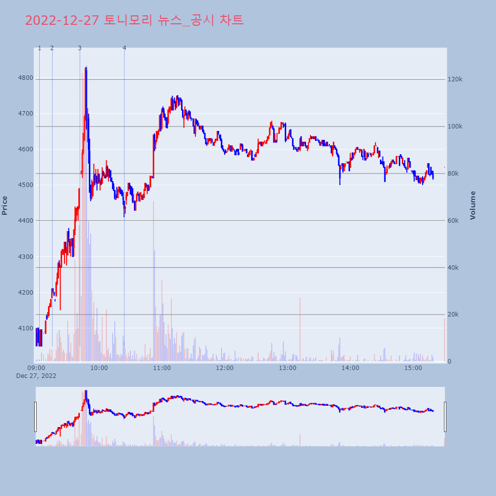 | 4 | 12월 27일 장초반 급등종목은? - 청담글로벌, STX중공업, 웹스... 최적의 매매타이밍을 실시간으로 전송하여 투자자들에게 도 | 파이낸셜 | STX중공업 | 2022-12-27 10:23:21 |