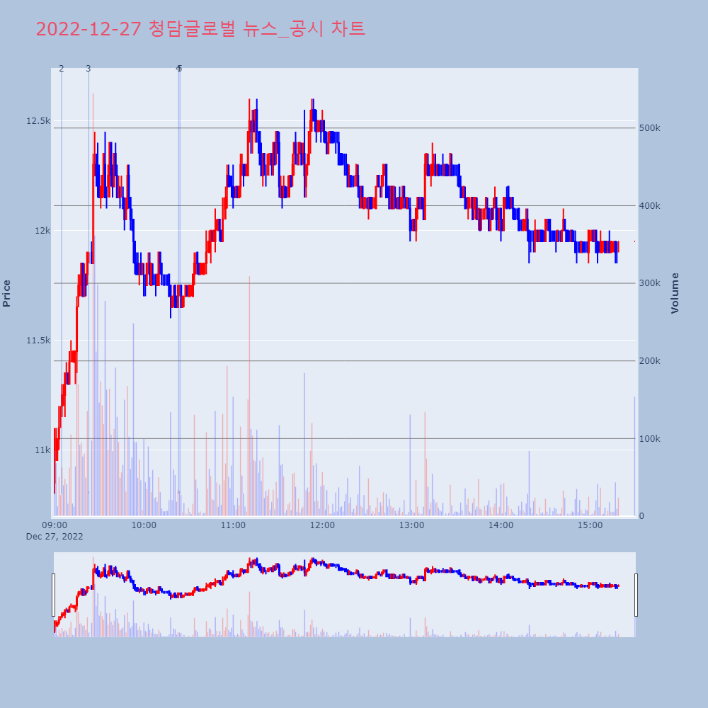| 3 | 청담글로벌, +11.21% VI 발동청담글로벌이 VI가 발동했다. 전일 대비 11.21% | 조선경제 | 청담글로벌 | 2022-12-27 09:23:03 |