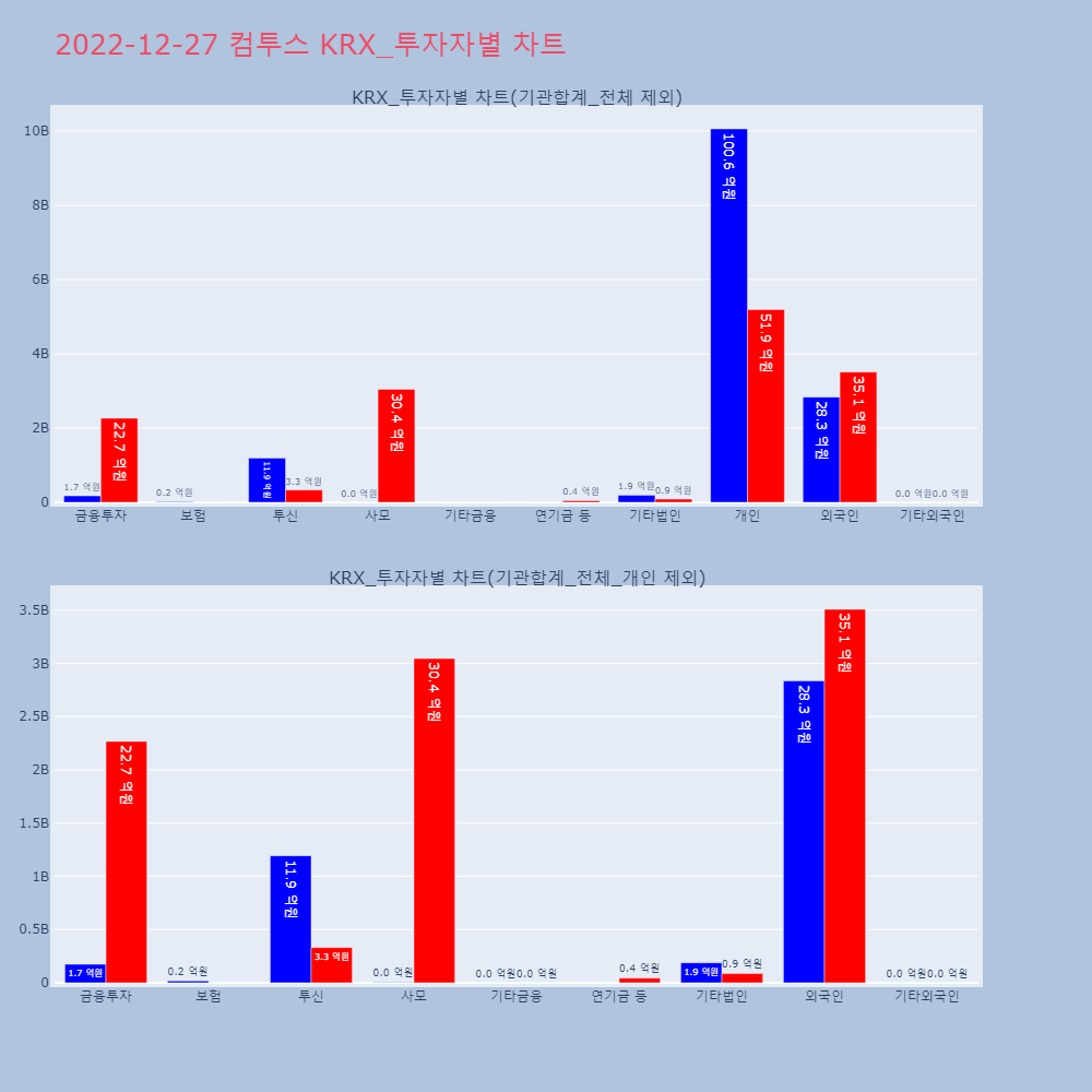 | 투자기관 | 거래량_매도 | 거래량_매수 | 거래량_순매수 | 거래대금_매도 | 거래대금_매수 | 거래대금_순매수 |