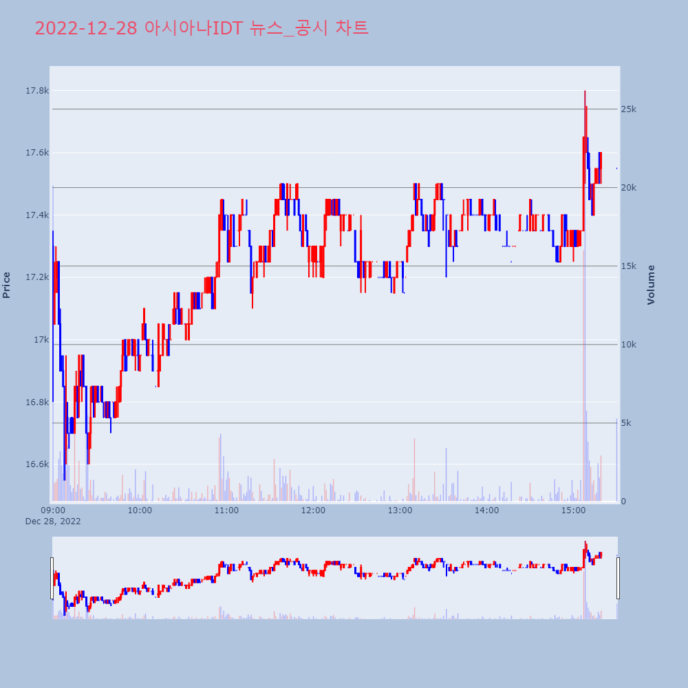 | 2 | 아시아나IDT(267850) 급등 출발 +12.50% 기업개요 금호아시아나그룹 산하 IT서비스 회사. 그룹 | 인포스탁 | 아시아나IDT | 2022-12-27 09:05:04 |