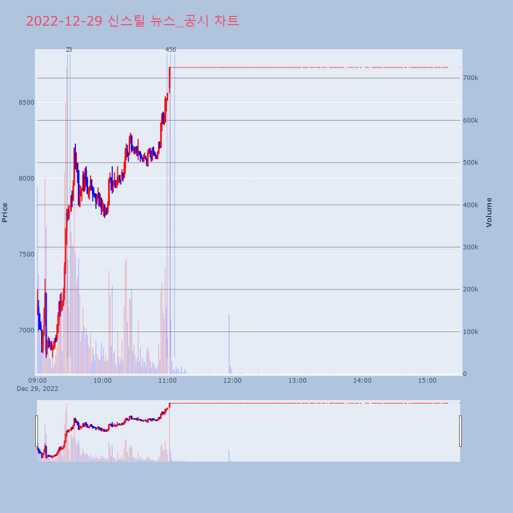 | 3 | '신스틸' 52주 신고가 경신, 주가 반등 시도, 단기 이평선 역배열 구간◆ 차트 분석- 주가 반등 시도, 단기 이평선 역배 | 한경/증권 | 신스틸 | 2022-12-29 09:30:10 |