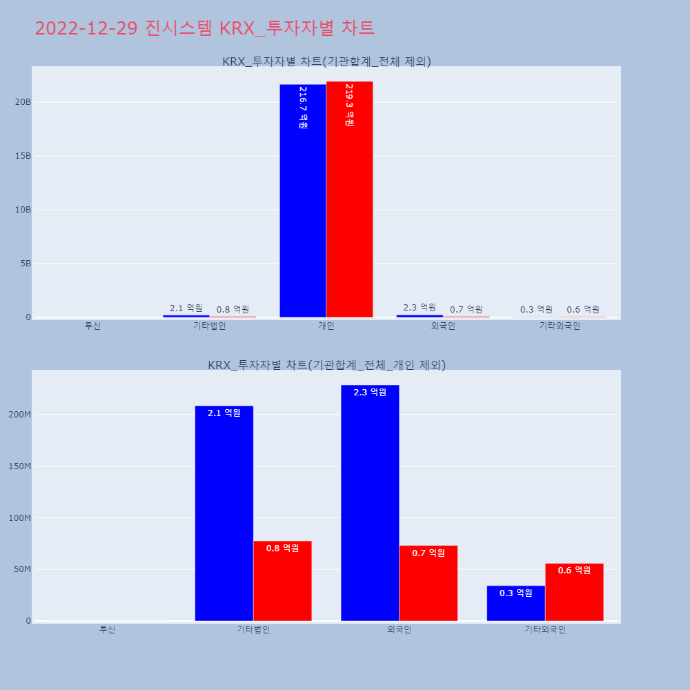 | 투자기관 | 거래량_매도 | 거래량_매수 | 거래량_순매수 | 거래대금_매도 | 거래대금_매수 | 거래대금_순매수 |