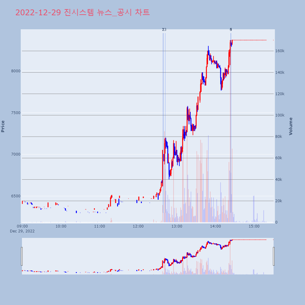 | 4 | 진시스템, +29.97% 상한가진시스템이 상한가를 기록했다. 전일 대비 29.97% | 조선경제 | 진시스템 | 2022-12-29 14:23:57 |
