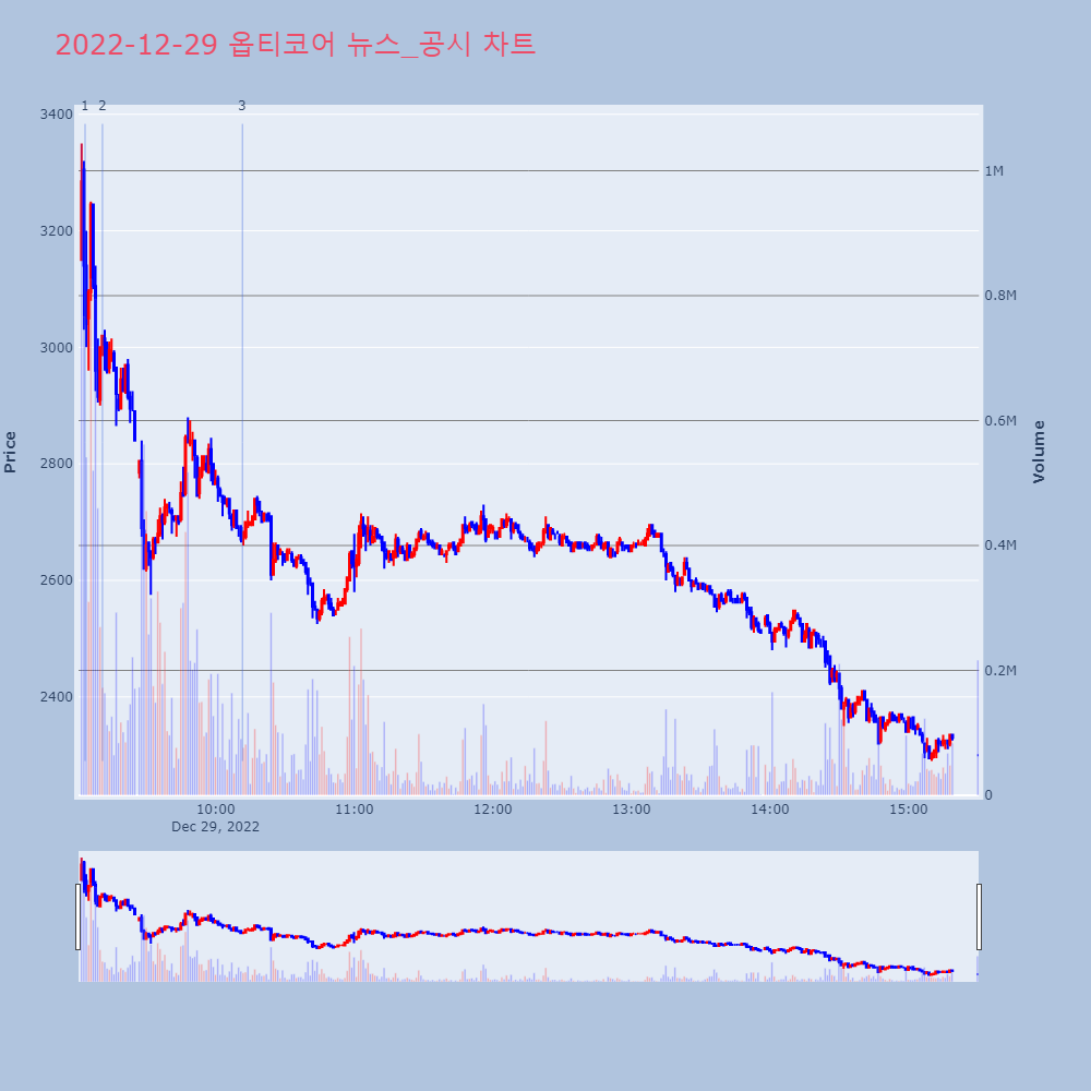 | 2 | [특징주] 옵티코어, 합병상장 첫날 장초반 강세[이투데이/박민규 기자(pmk8989@etoday.co | 이투데이 | 옵티코어 | 2022-12-29 09:11:02 |
