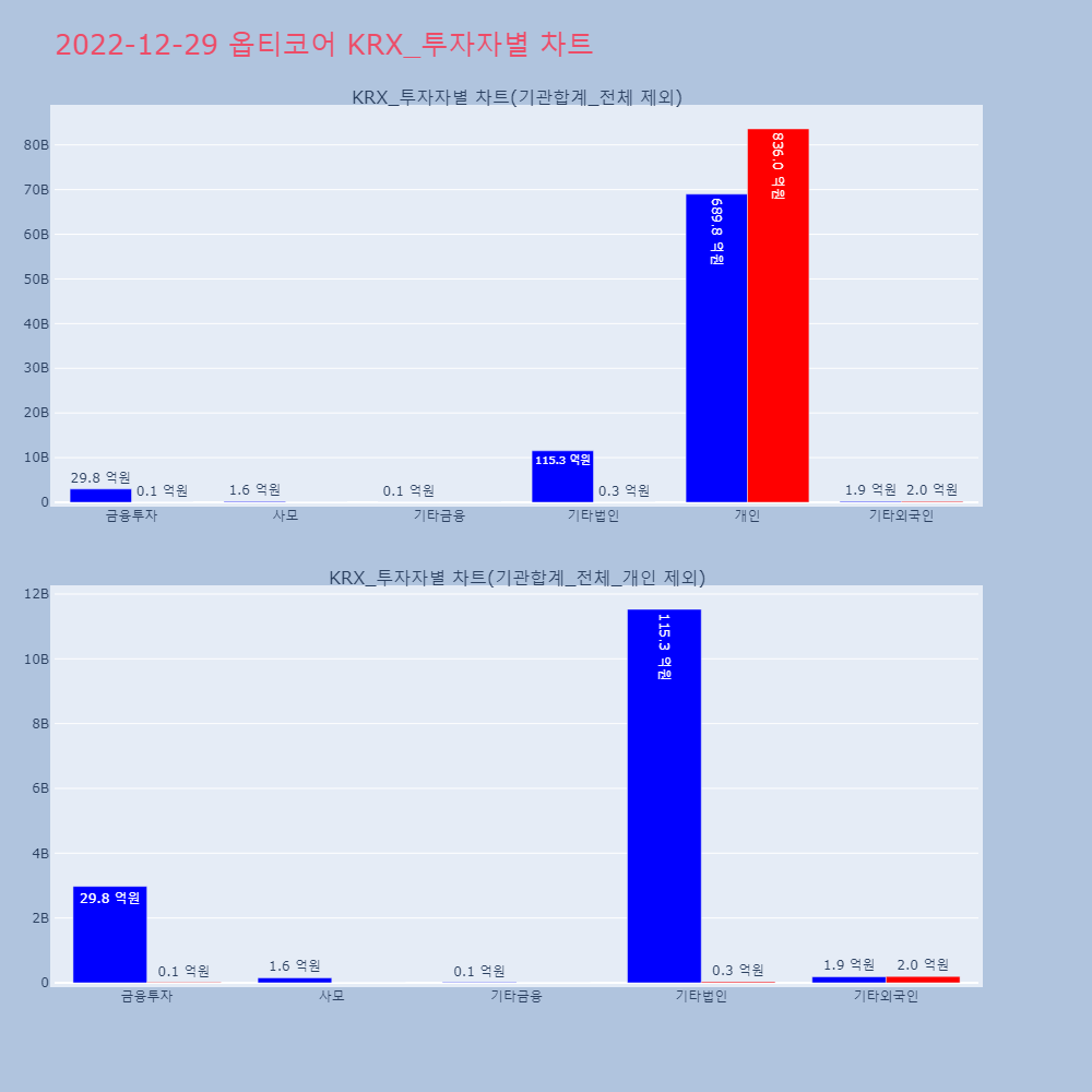 | 투자기관 | 거래량_매도 | 거래량_매수 | 거래량_순매수 | 거래대금_매도 | 거래대금_매수 | 거래대금_순매수 |