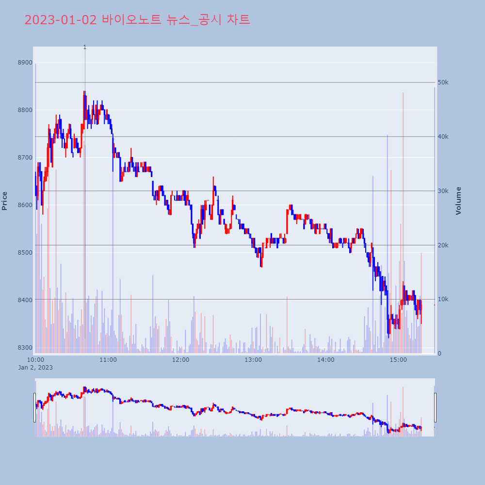 | 1 | 바이오노트(377740) 소폭 상승세 +3.03%, 6거래일만에 반등 기업개요 동물용 진단 검사 제품 및 바이오 컨텐츠(B | 인포스탁 | 바이오노트 | 2023-01-02 10:41:00 |