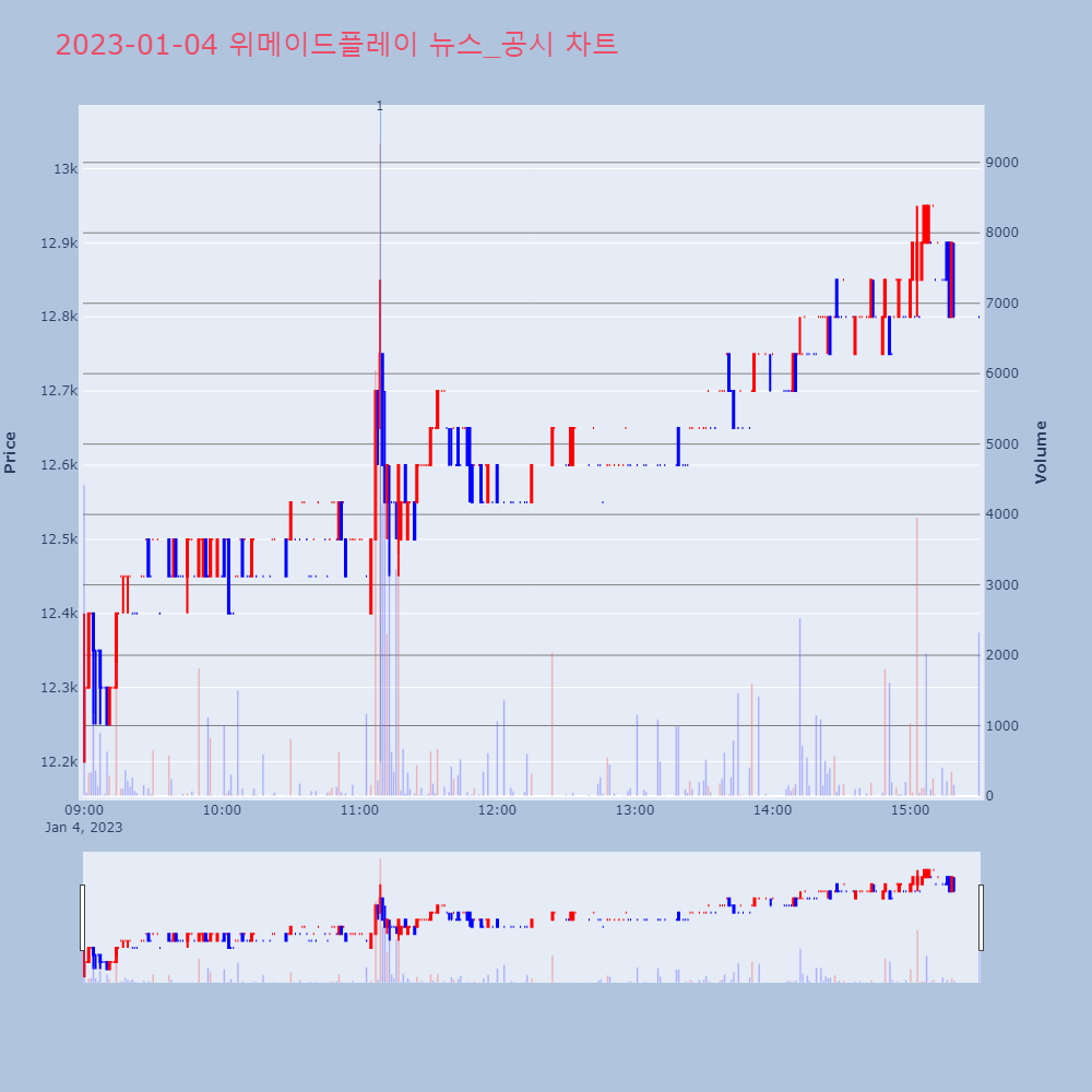 위메이드플레이(123420) +2.81%[종가: 12,800원]