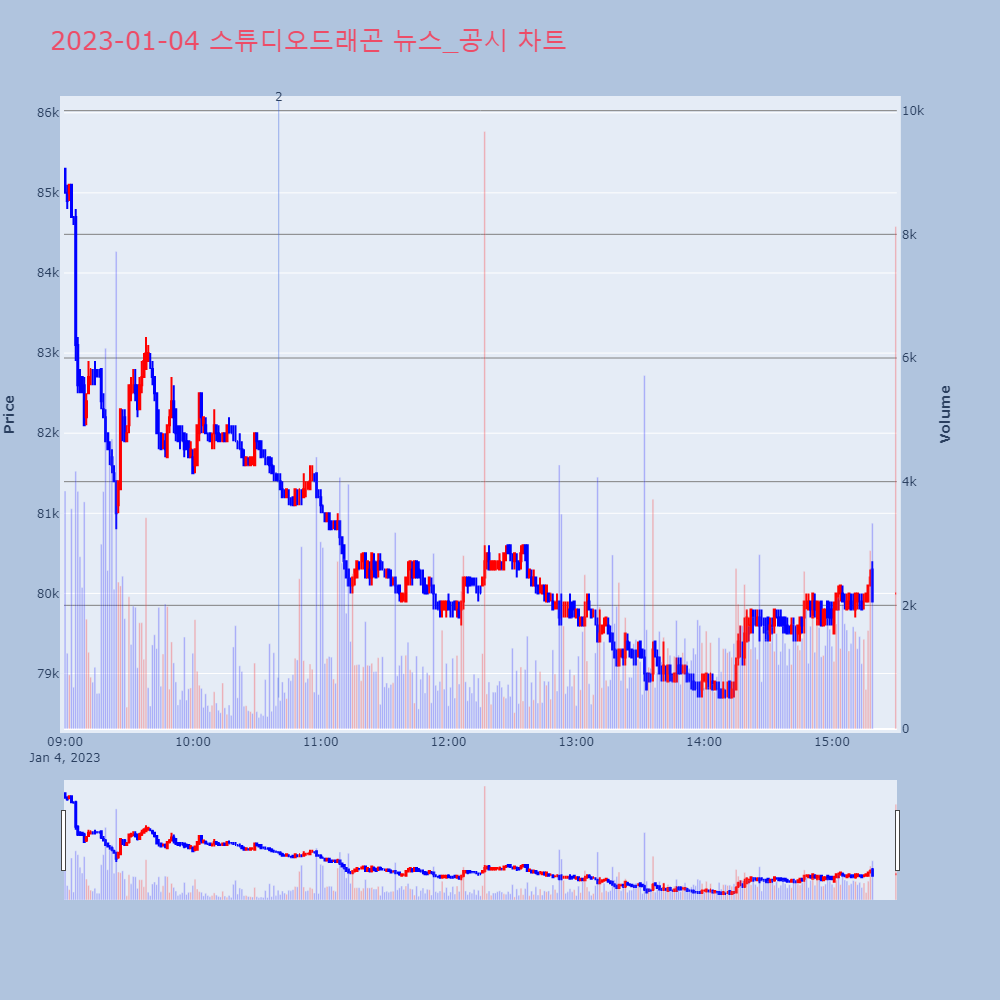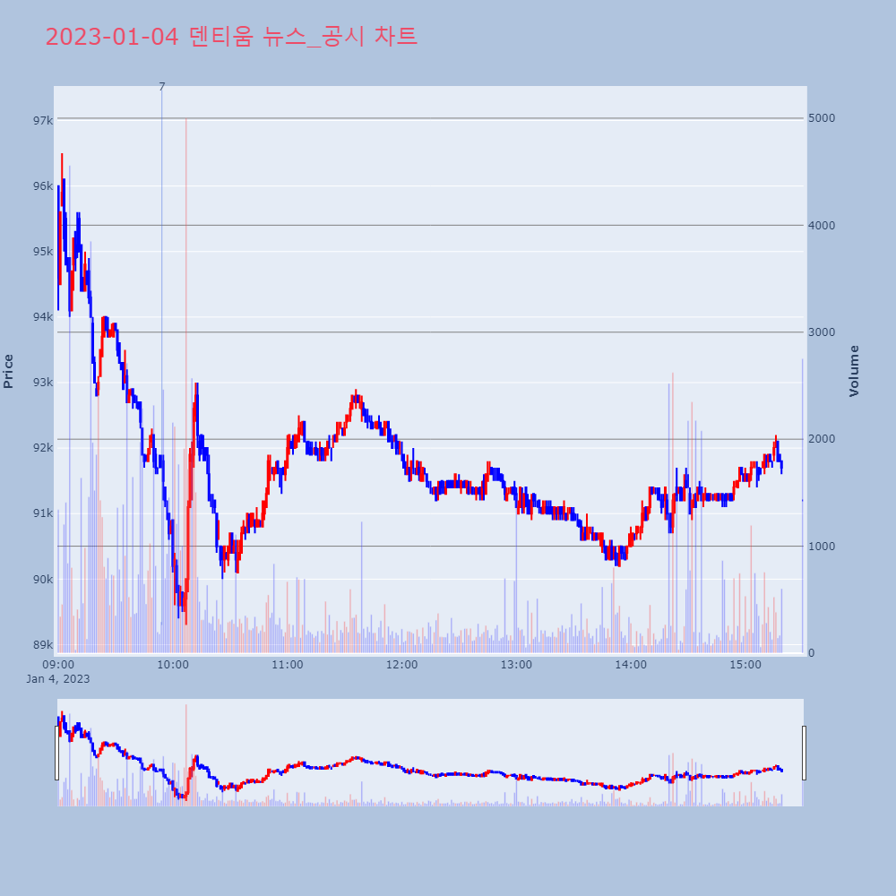 | 7 | 비츠로시스, 0.00% VI 발동비츠로시스가 VI가 발동했다. 현재 1,265원에 거래 | 조선경제 | 비츠로시스 | 2023-01-04 09:00:07 |