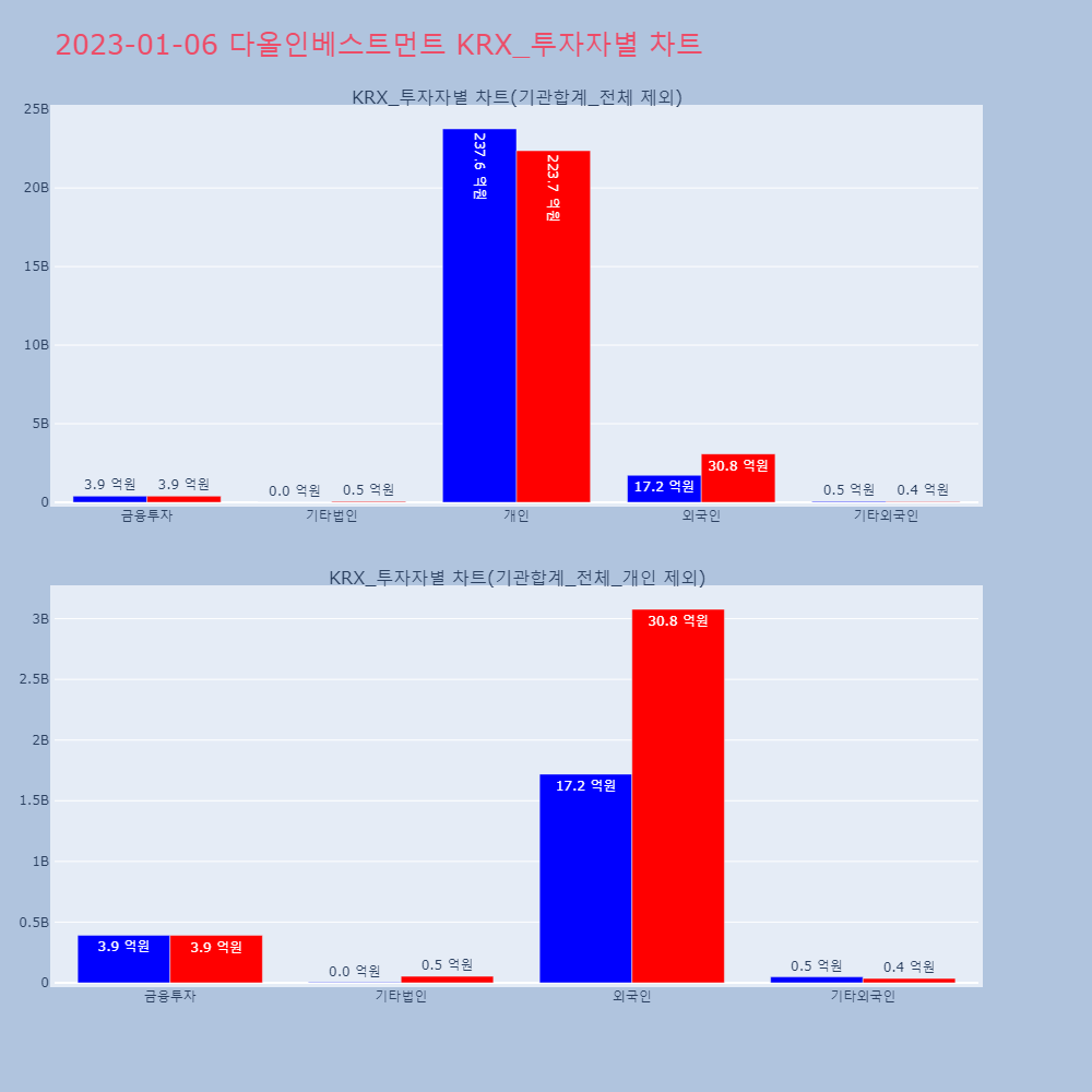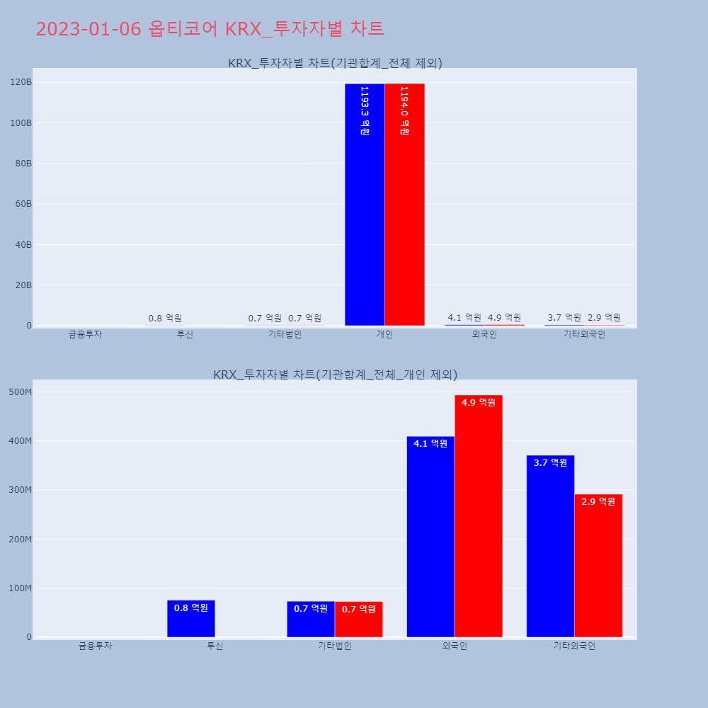 | 투자기관 | 거래량_매도 | 거래량_매수 | 거래량_순매수 | 거래대금_매도 | 거래대금_매수 | 거래대금_순매수 |