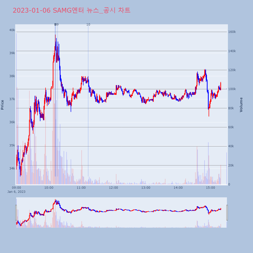 | 1 | 'SAMG엔터' 52주 신고가 경신, 단기·중기 이평선 정배열로 상승세◆ 차트 분석- 단기·중기 이평선 정배열로 상승세 | 한경/증권 | SAMG엔터 | 2023-01-05 10:55:11 |