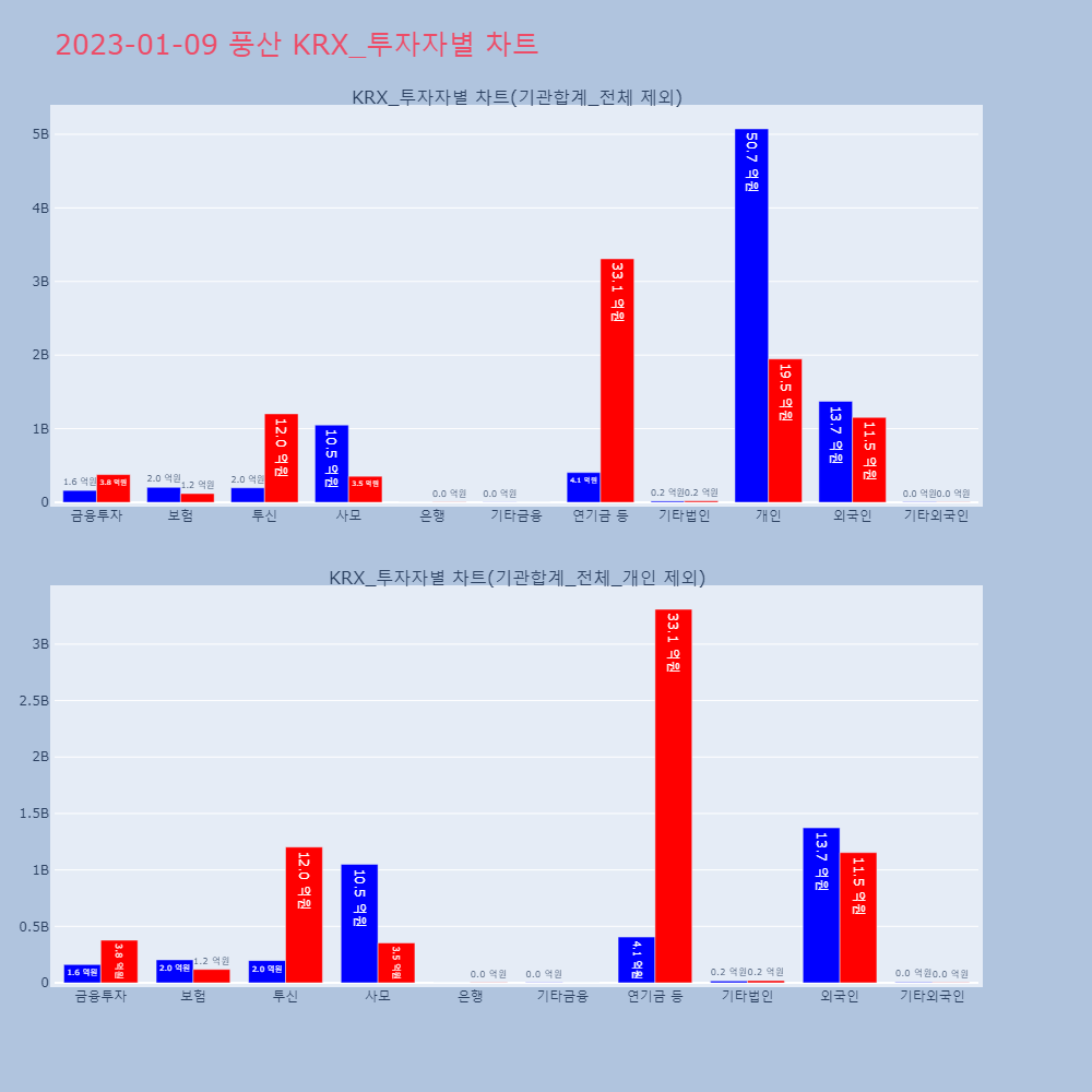| 투자기관 | 거래량_매도 | 거래량_매수 | 거래량_순매수 | 거래대금_매도 | 거래대금_매수 | 거래대금_순매수 |