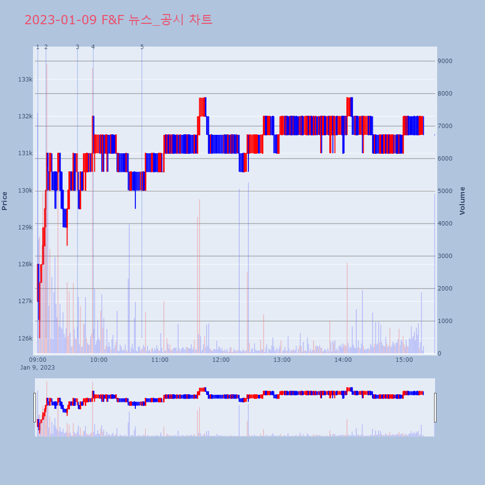 | 5 | [장중수급포착] F&F, 외국인/기관 동시 순매수… 주가 +3.97% [서울=뉴스핌] 로보뉴스 = 09일 10시 15분 현재 | 뉴스핌 | F&F | 2023-01-09 10:42:23 |