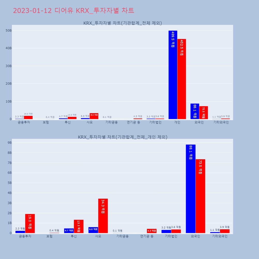 | 투자기관 | 거래량_매도 | 거래량_매수 | 거래량_순매수 | 거래대금_매도 | 거래대금_매수 | 거래대금_순매수 |