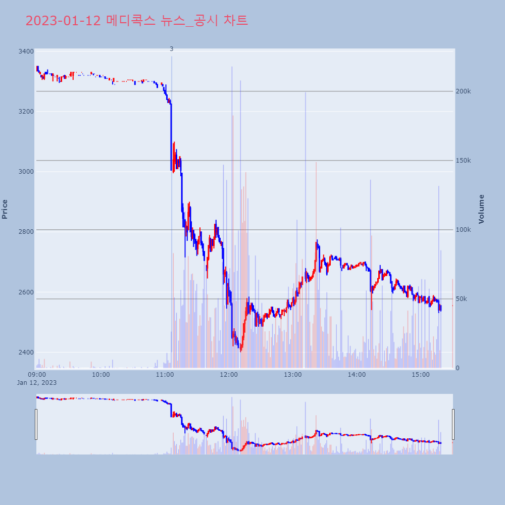 | 3 | 메디콕스, -5.30% VI 발동메디콕스가 VI가 발동했다. 전일 대비 5.30% 하락 | 조선경제 | 메디콕스 | 2023-01-12 11:06:30 |