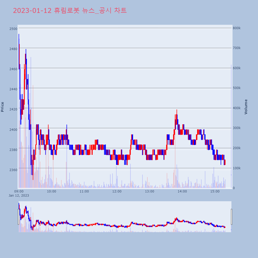 | 2023. 01. 12 시간외 특징주 옵티코어 레인보우로보틱스 SAMG엔터 다올인베스트먼트 한화솔루션 희림 휴마시스 쎄노텍 포스코케미칼 한미글로벌 (0) | 2023.01.12 |