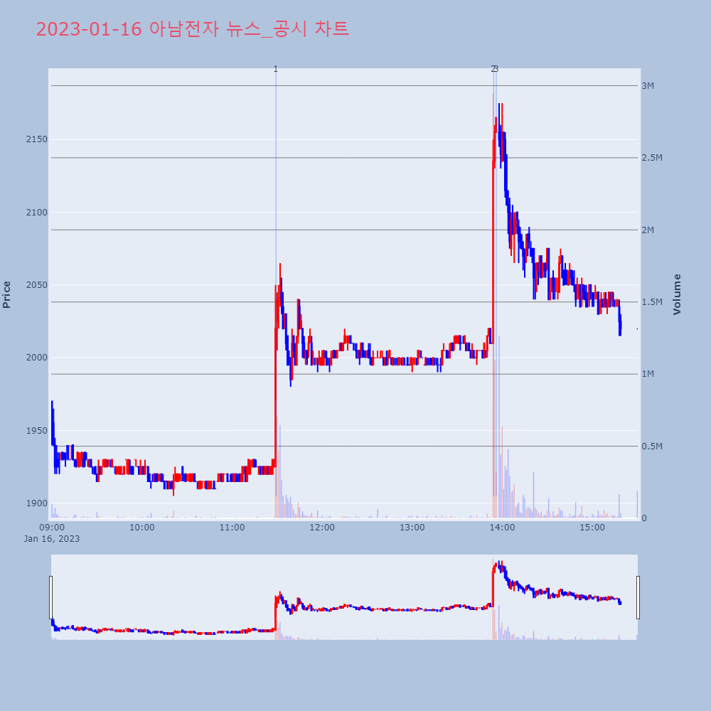 | 3 | 아남전자, +11.89% VI 발동아남전자가 VI가 발동했다. 전일 대비 11.89% 상 | 조선경제 | 아남전자 | 2023-01-16 13:56:04 |