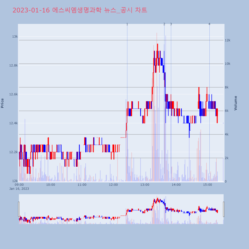 | 3 | 에스씨엠생명과학 "JP모간서 글로벌 기업 등과 회의 실시"에스씨엠생명과학은 미국 샌프란시스코에서 개최된 202 | 한경/정보/과학 | 에스씨엠생명과학 | 2023-01-16 13:50:16 |