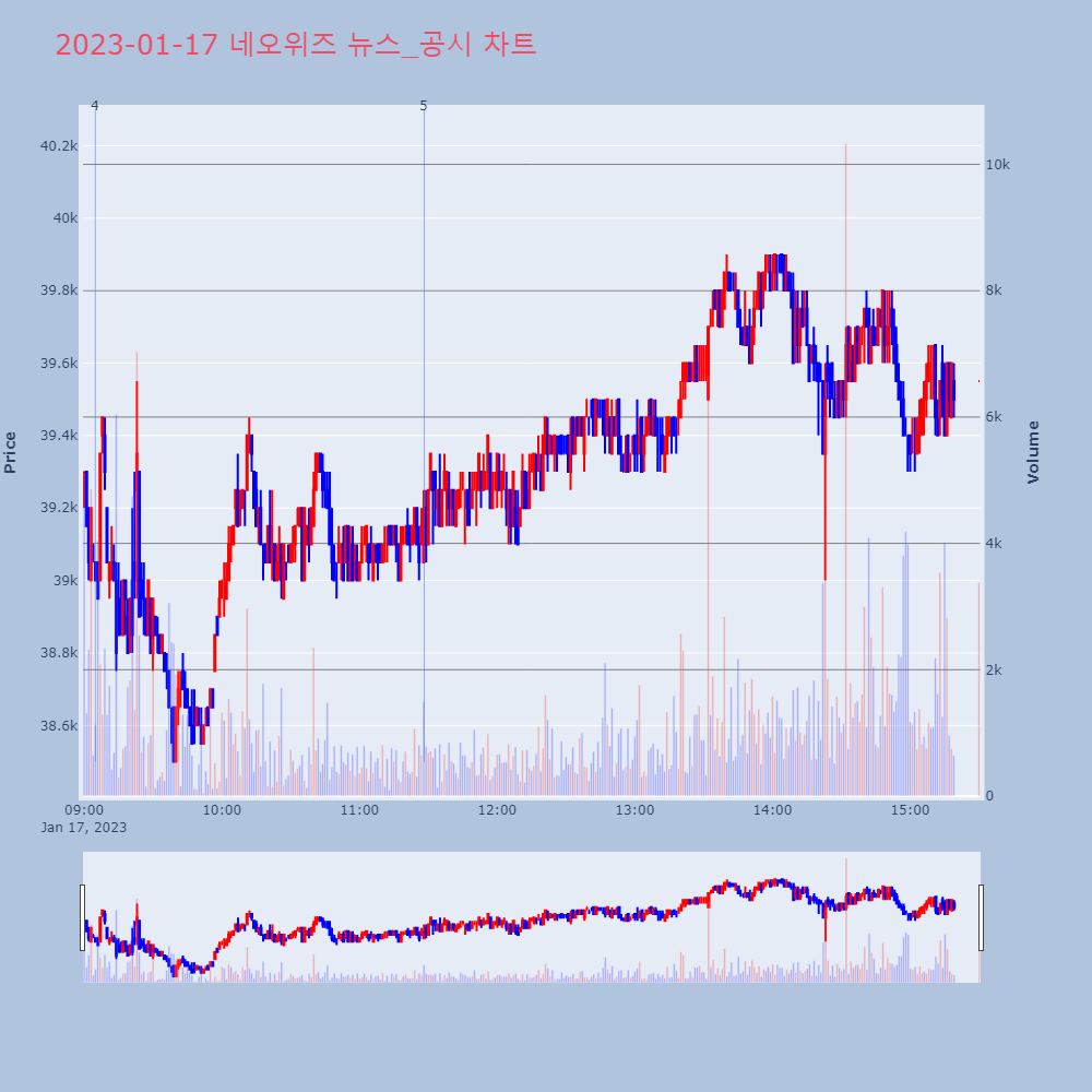 | 2 | [장중수급포착] 네오위즈, 외국인/기관 동시 순매수… 주가 +2.37% [서울=뉴스핌] 로보뉴스 = 16일 10시 15분 현재 | 뉴스핌 | 네오위즈 | 2023-01-16 10:26:39 |