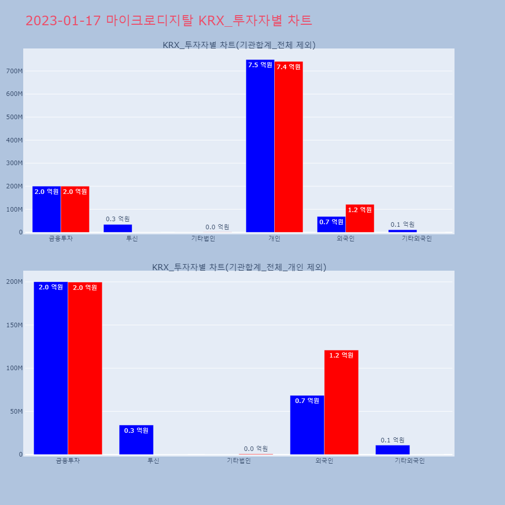 | 투자기관 | 거래량_매도 | 거래량_매수 | 거래량_순매수 | 거래대금_매도 | 거래대금_매수 | 거래대금_순매수 |