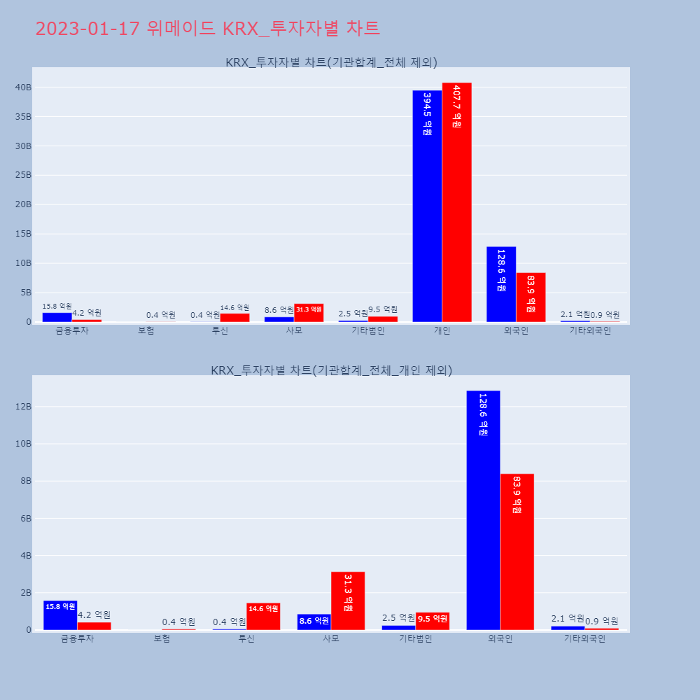 | 개인 | 268,125 | 151,195 | -116,930 | 10,554,603,800 | 5,940,269,200 | -4,614,334,600 |