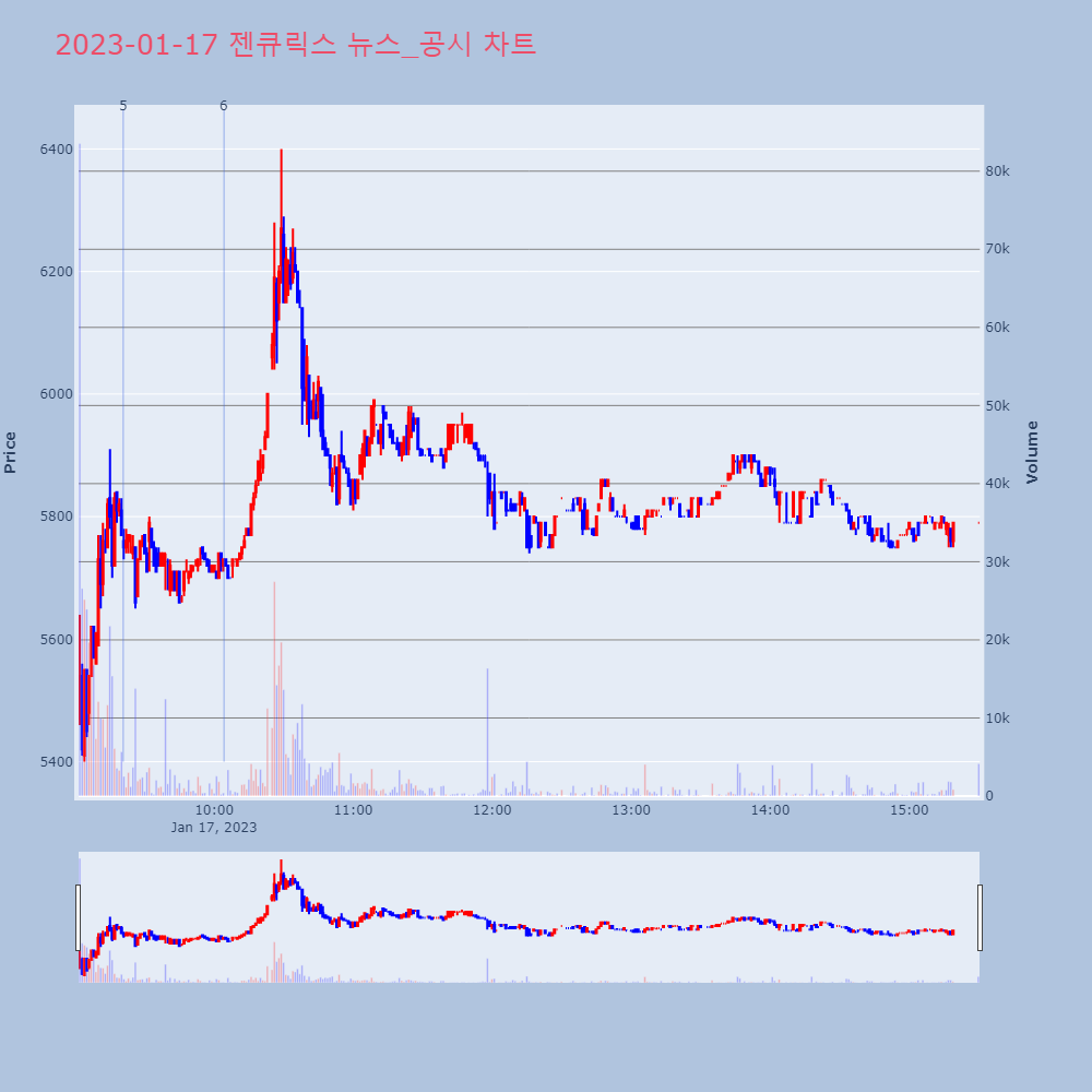| 5 | [특징주] 젠큐릭스, 주주배정 유상증자 결정 소식에 '급락' 제목 : [특징주] 젠큐릭스, 주주배정 유상증자 결정 | 인포스탁 | 젠큐릭스 | 2023-01-17 09:20:46 |