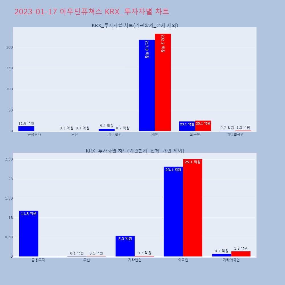 | 투자기관 | 거래량_매도 | 거래량_매수 | 거래량_순매수 | 거래대금_매도 | 거래대금_매수 | 거래대금_순매수 |
