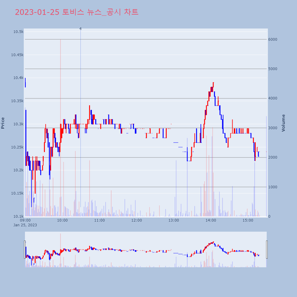 | 4 | [장중수급포착] 토비스, 외국인/기관 동시 순매수… 주가 +3.00% [서울=뉴스핌] 로보뉴스 = 25일 10시 15분 현재 | 뉴스핌 | 토비스 | 2023-01-25 10:29:33 |