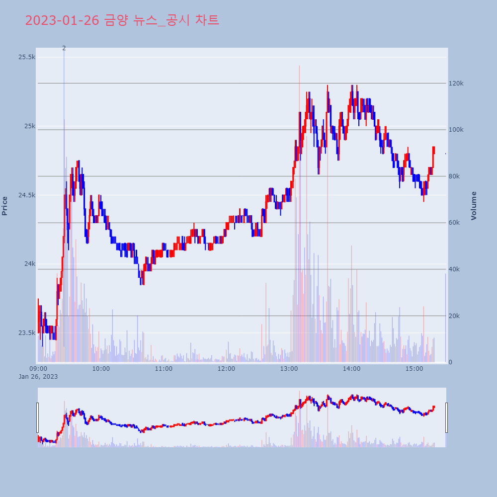 | 3 | [수익 내비게이터] 2차전지 전체 기술적 반등 본격 시작 [금양] vs 언어 데오늘을 정리하고 내일을 준비할 때!어드바이저가 준비한 | MTN | 이루다 | 2023-01-26 16:55:31 |