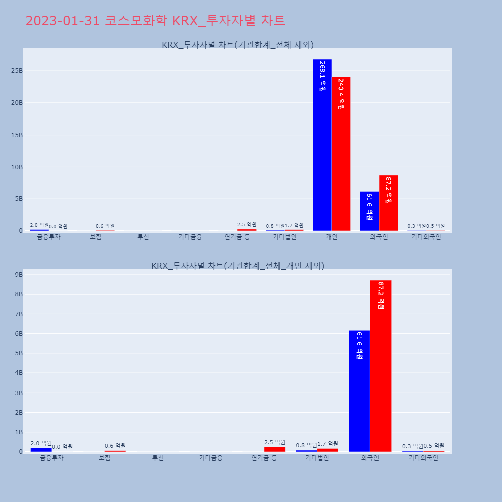 | 외국인 | 129,762 | 125,481 | -4,281 | 2,196,613,140 | 2,116,749,830 | -79,863,310 |