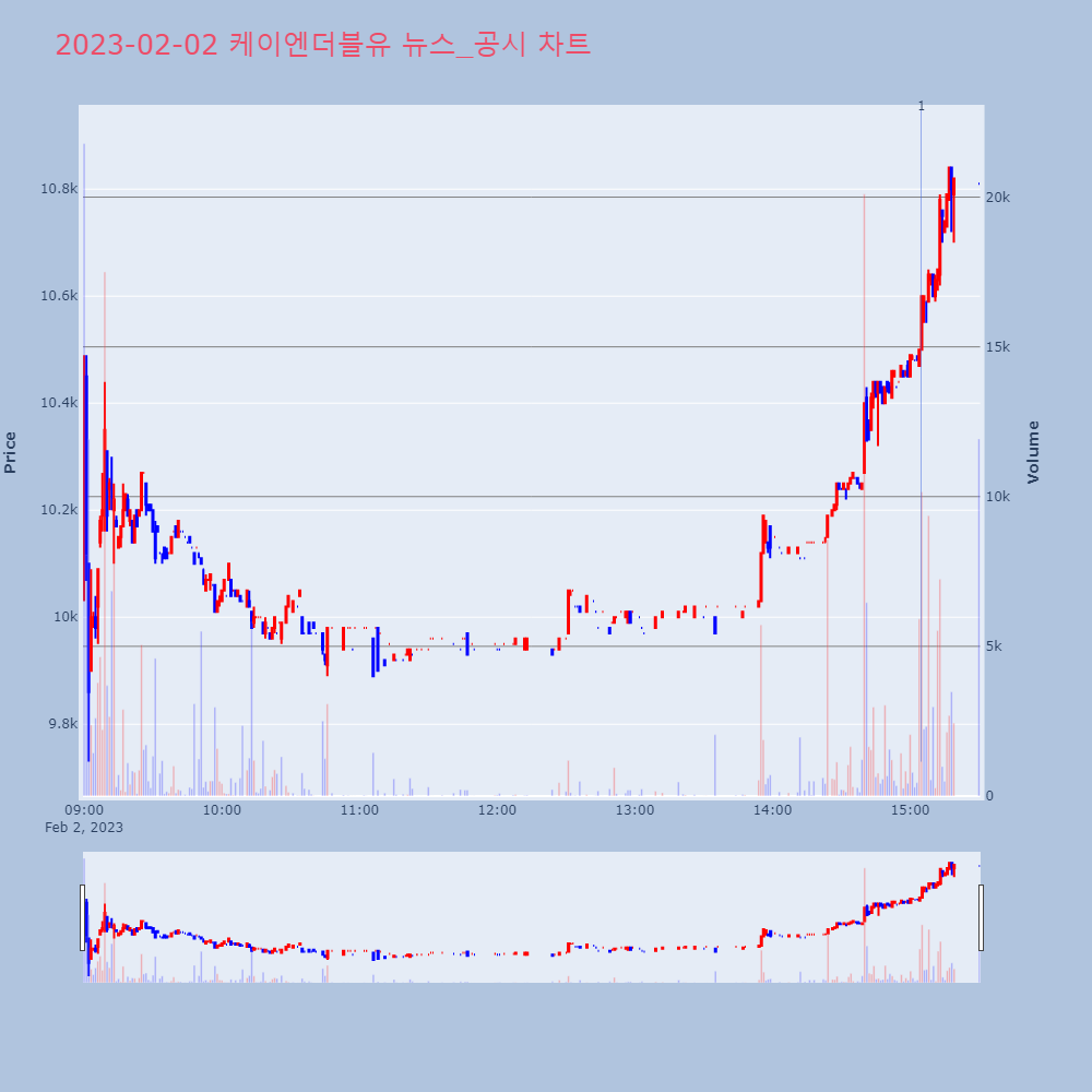 | 3 | [시간외Y] 케이엔더블유, 코이즈 '상한가'[프라임경제] 재테크와 투자, 부동산 등에 대한 관심이 | 프라임경제 | 케이엔더블유 | 2023-02-02 18:04:30 |
