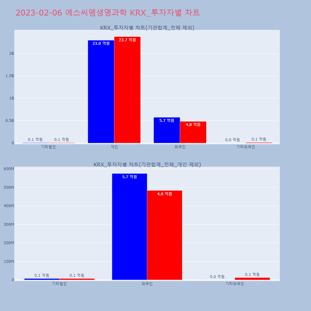 | 외국인 | 845,602 | 492,727 | -352,875 | 39,201,659,100 | 22,875,462,400 | -16,326,196,700 |