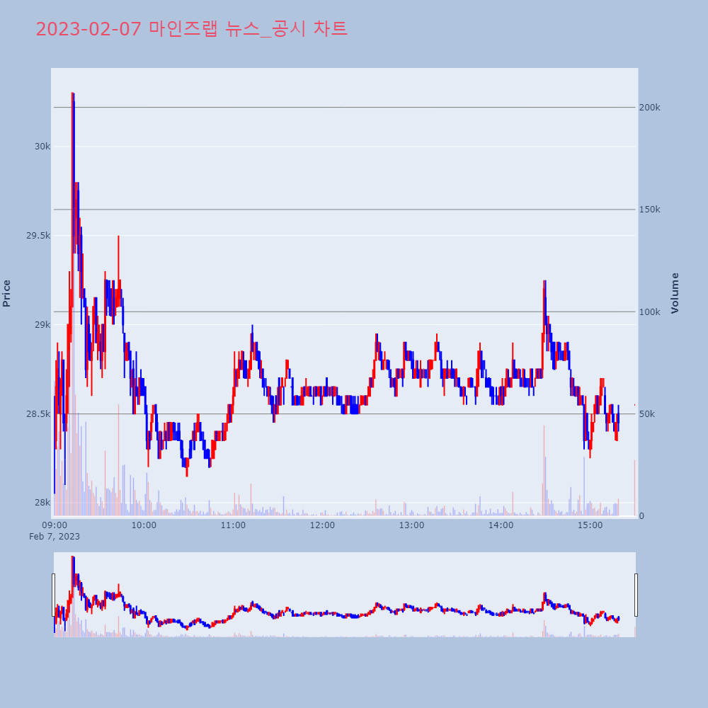 | 5 | 마인즈랩, +10.44% VI 발동마인즈랩이 VI가 발동했다. 전일 대비 10.44% 상 | 조선경제 | 마인즈랩 | 2023-02-06 14:33:09 |