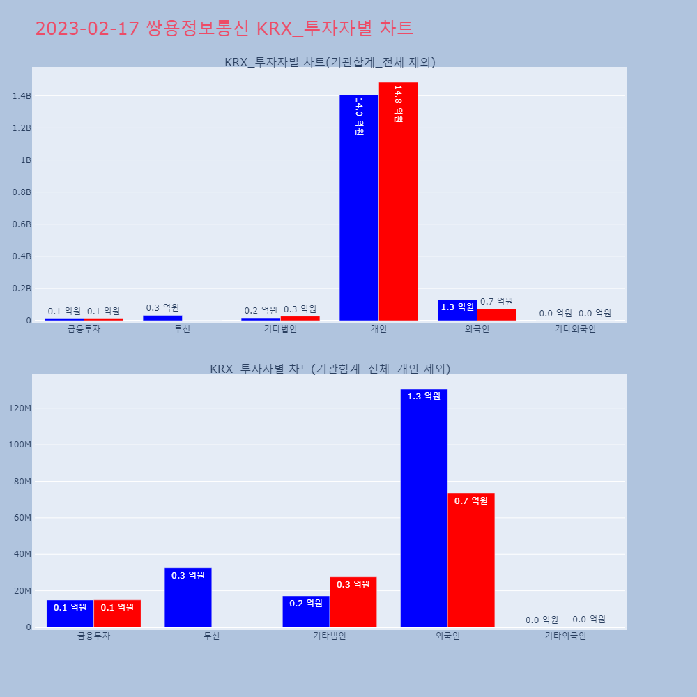 | 외국인 | 1,116,370 | 487,785 | -628,585 | 8,828,101,050 | 3,817,989,550 | -5,010,111,500 |