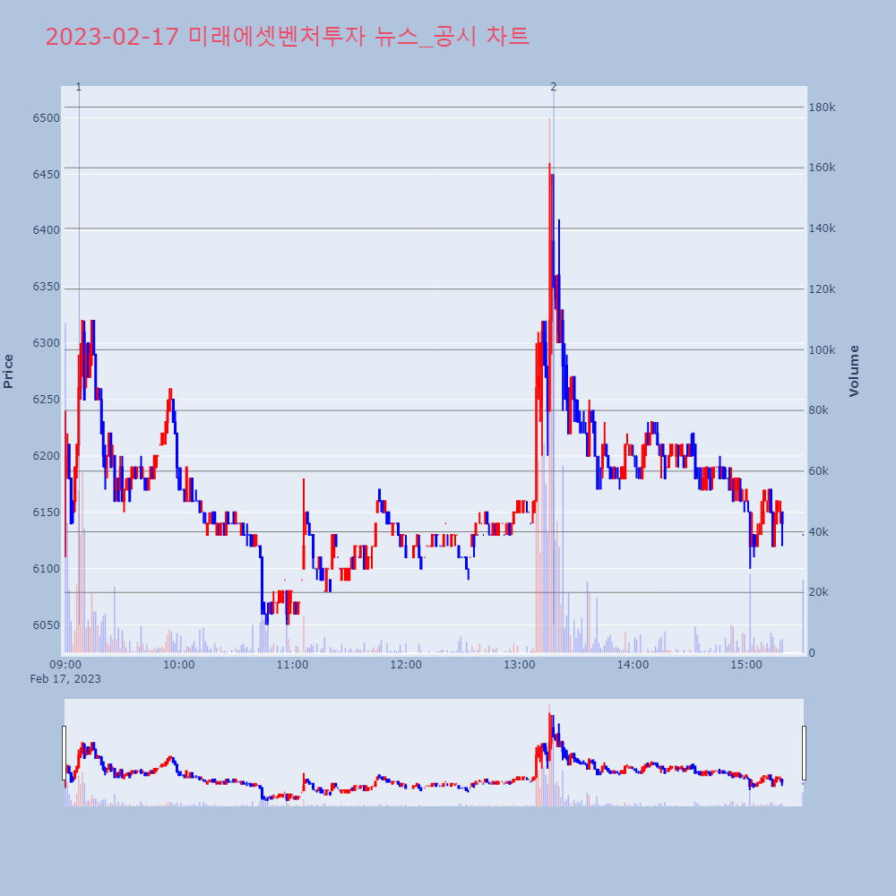 | 2 | 미래에셋벤처투자, +6.61% 상승폭 확대미래에셋벤처투자가 상승폭을 확대하고 있다. 전일 대비 | 조선경제 | 미래에셋벤처투자 | 2023-02-17 13:18:12 |