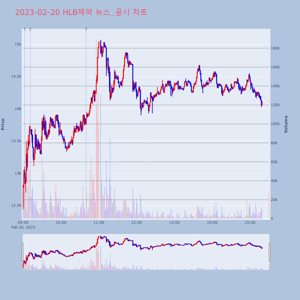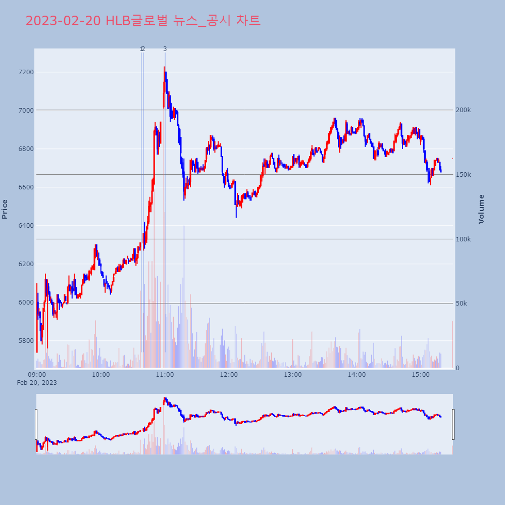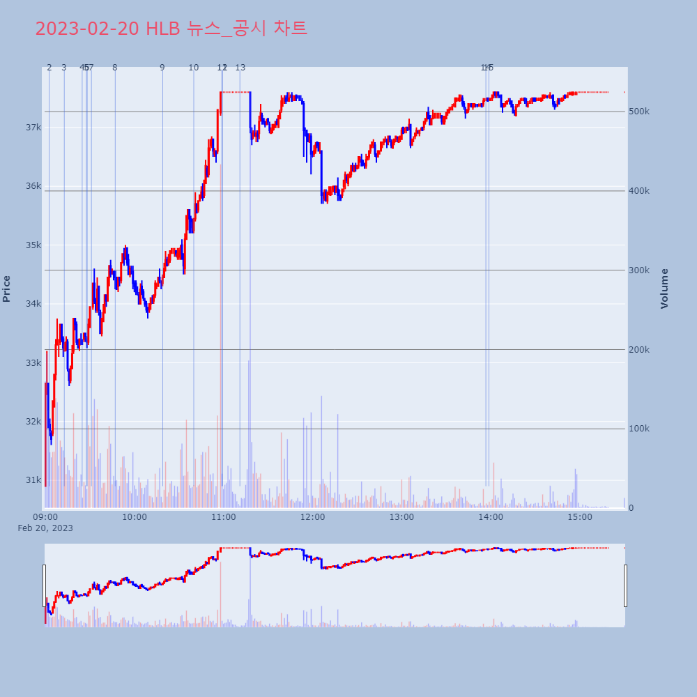 8 "완전한 바이오기업 됐다"… HLB 장중 17%대 '급등'HLB의 주가가 20일 장 초반 급등하고 있다. 기존 한경/증권 HLB 2023-02-20 09:47:04