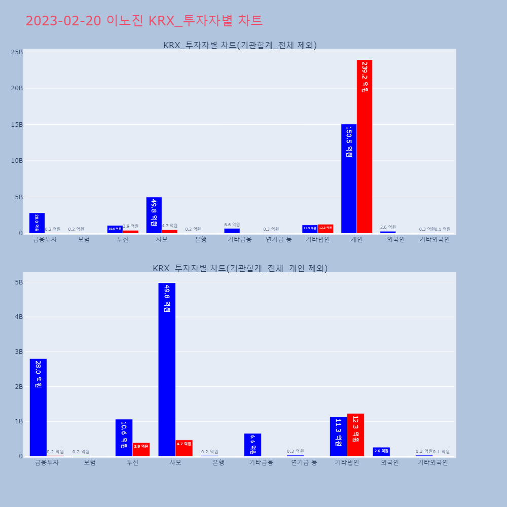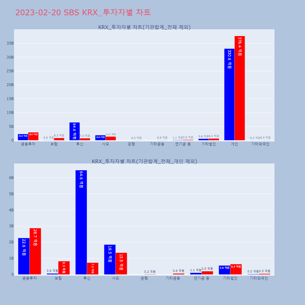 | 금융투자 | 21,359 | 141,240 | 119,881 | 574,362,100 | 3,860,290,300 | 3,285,928,200 |