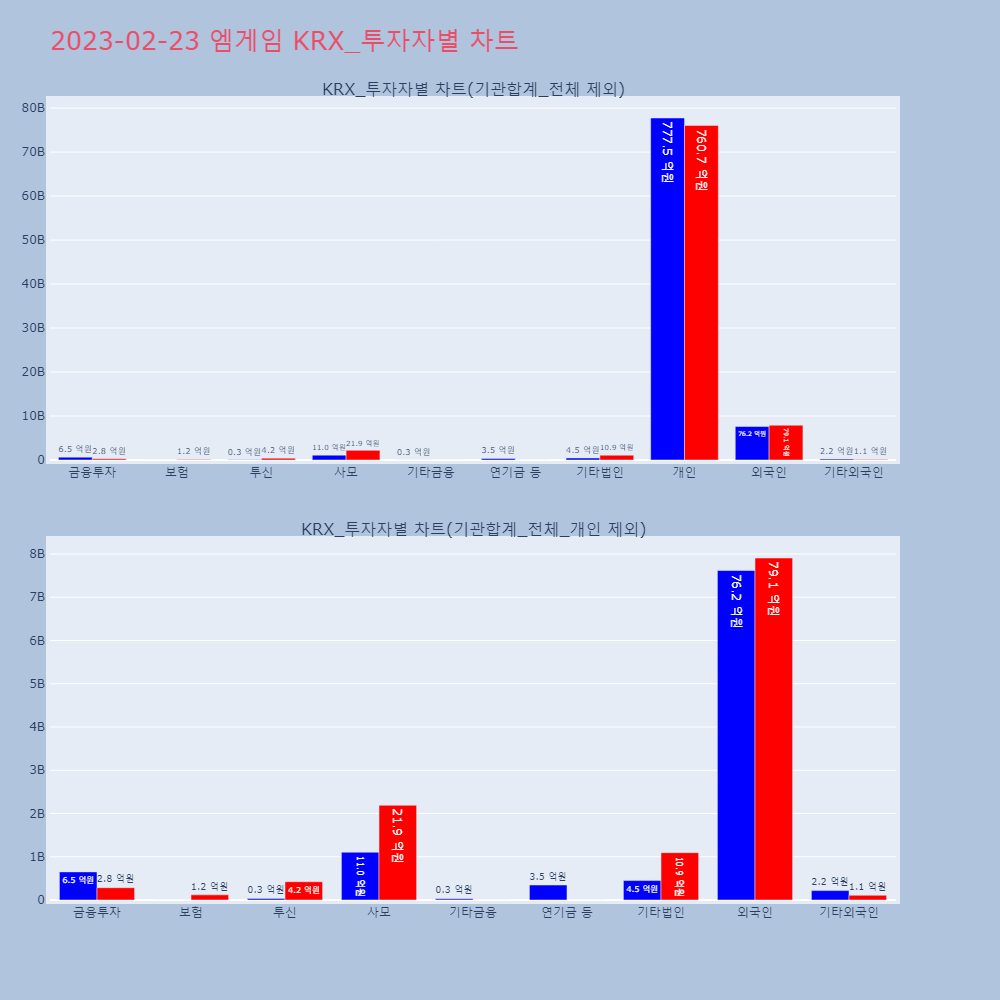 | 사모 | 20,930 | 771 | -20,159 | 4,522,570,500 | 165,788,500 | -4,356,782,000 |