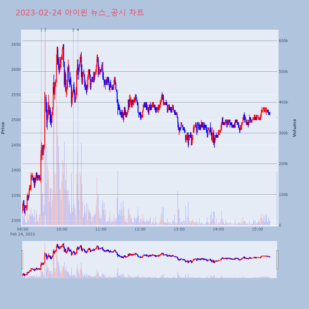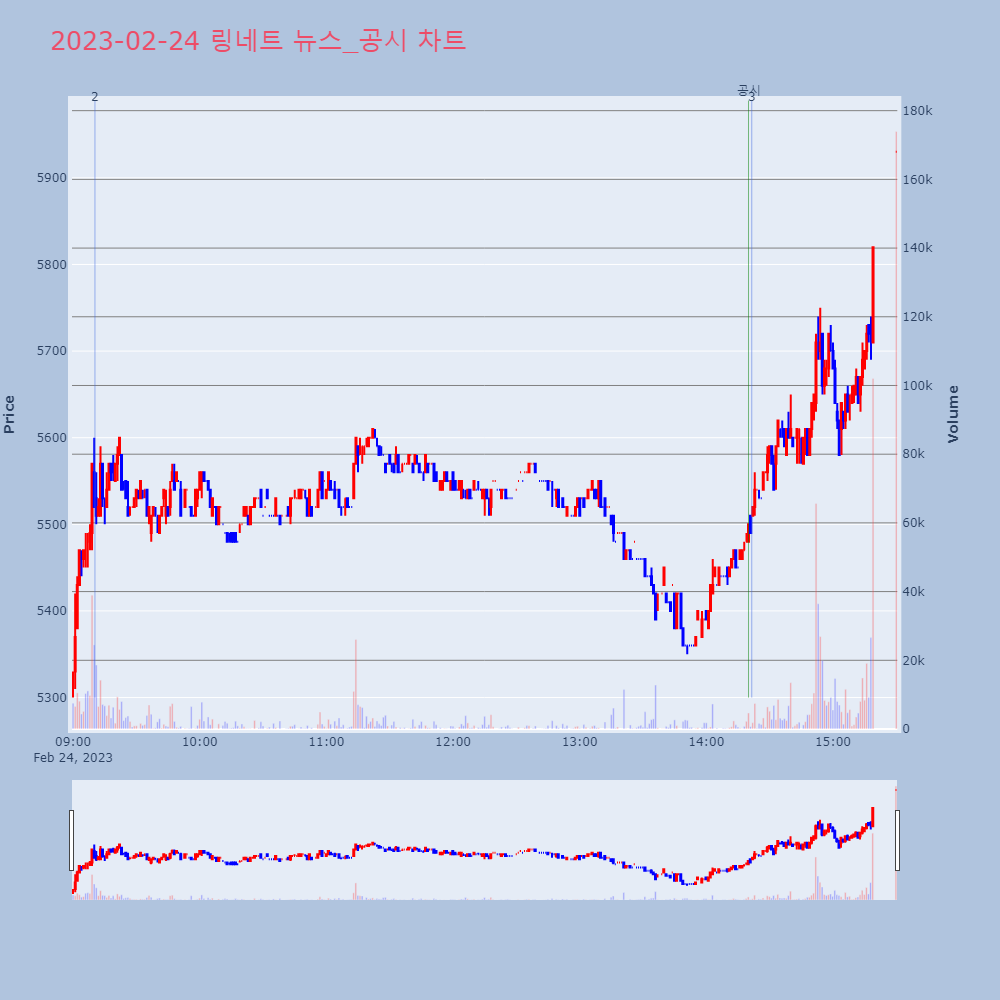 | 2023-02-23 17:16:00 | 20230223900927 | 매출액또는손익구조30%(대규모법인은15%)이상변동 |