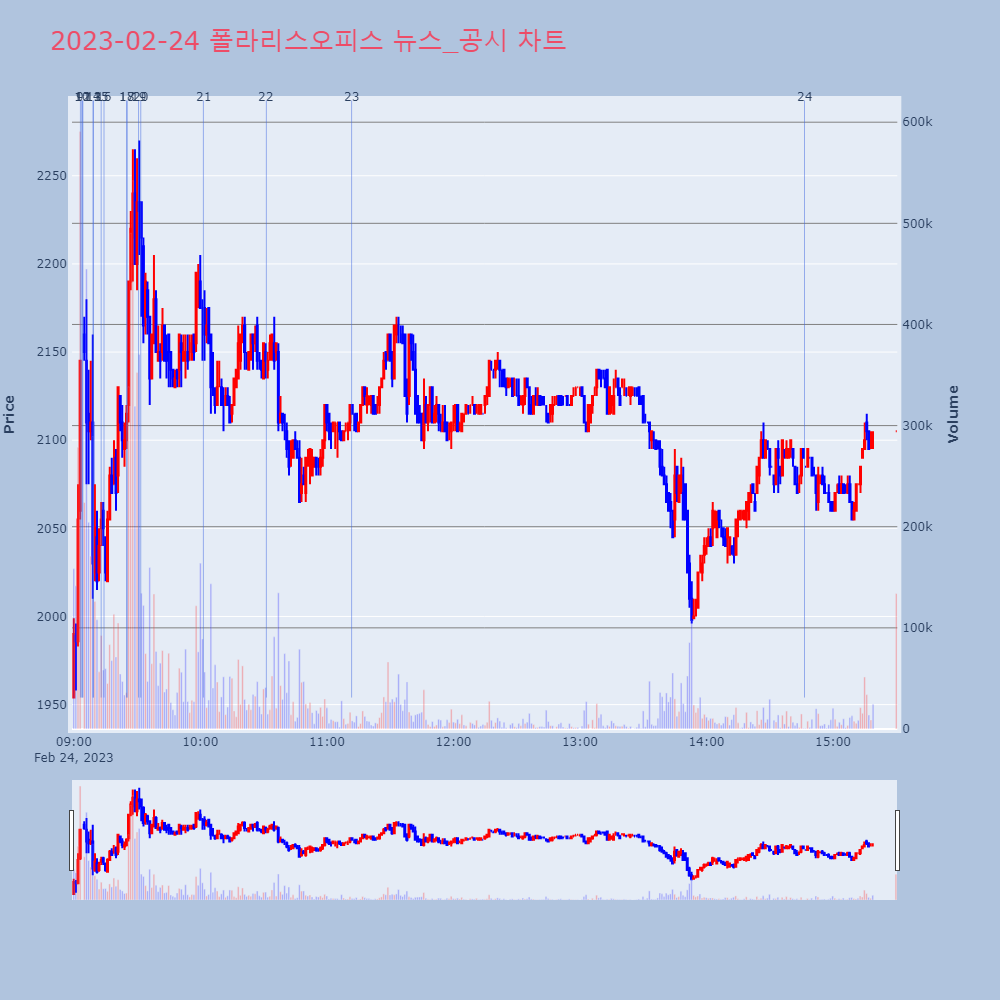 | 2 | 폴라리스오피스, +8.88% VI 발동폴라리스오피스가 VI가 발동했다. 전일 대비 8.88% | 조선경제 | 폴라리스오피스 | 2023-02-23 09:36:11 |