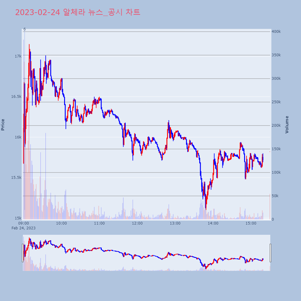 | 3 | 알체라, +11.76% VI 발동알체라가 VI가 발동했다. 전일 대비 11.76% 상승 | 조선경제 | 알체라 | 2023-02-23 10:53:43 |