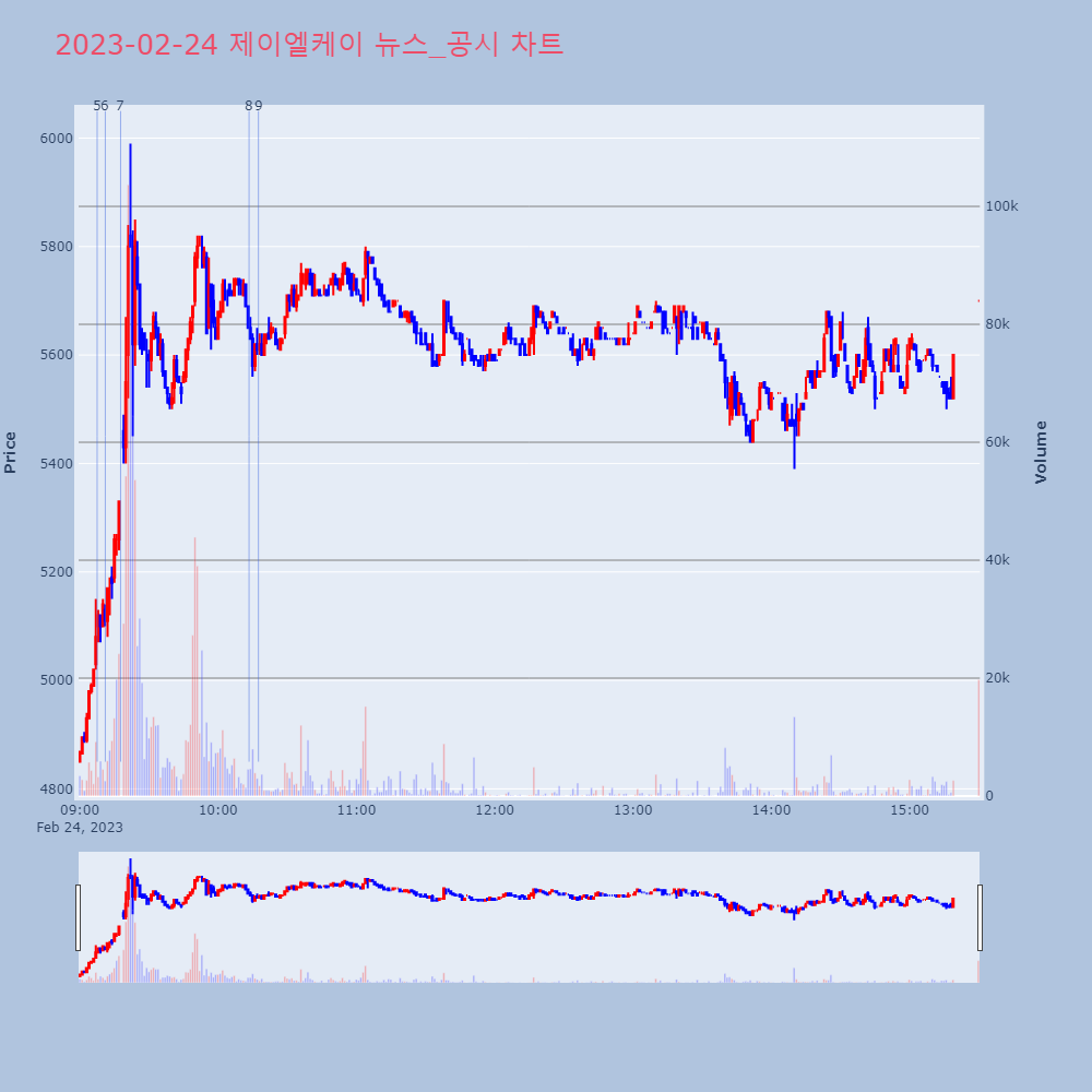 | 7 | 제이엘케이, +9.92% VI 발동제이엘케이가 VI가 발동했다. 전일 대비 9.92% 상 | 조선경제 | 제이엘케이 | 2023-02-24 09:17:43 |