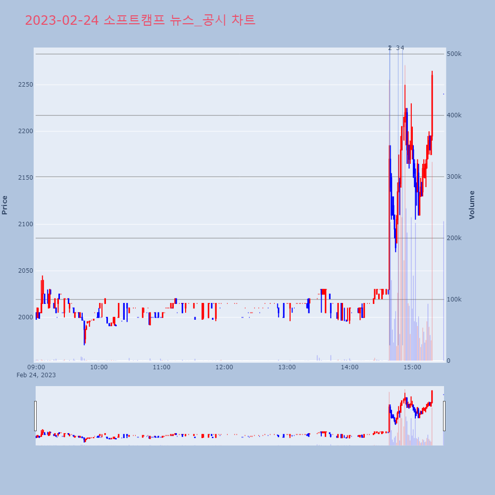 | 4 | 2월 23일 오전장 급등종목은? - 솔트룩스, 소프트센, 제이엘케이... 최적의 매매타이밍을 실시간으로 전송하여 투자자들에게 도 | 파이낸셜 | 소프트센 | 2023-02-23 11:10:38 |