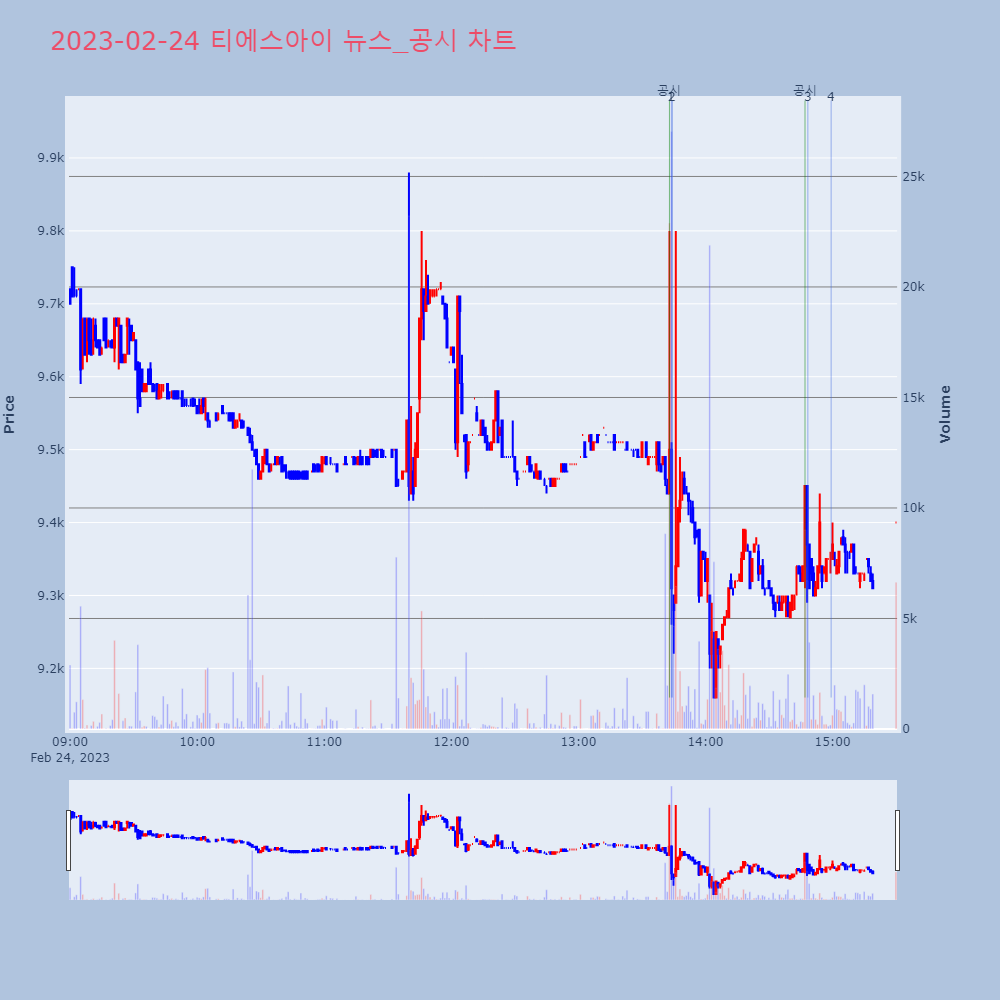 | 3 | 티에스아이, 399.99억원 규모 제3자배정 유상증자 결정 제목 : 티에스아이, 399.99억원 규모 제3자배정 | 인포스탁 | 티에스아이 | 2023-02-24 14:48:21 |