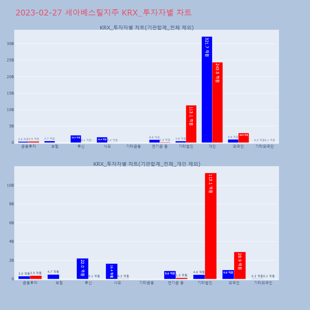 | 기타외국인 | 5,792 | 3,278 | -2,514 | 1,546,280,500 | 867,942,500 | -678,338,000 |
