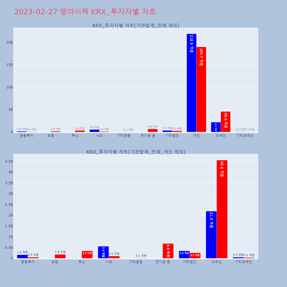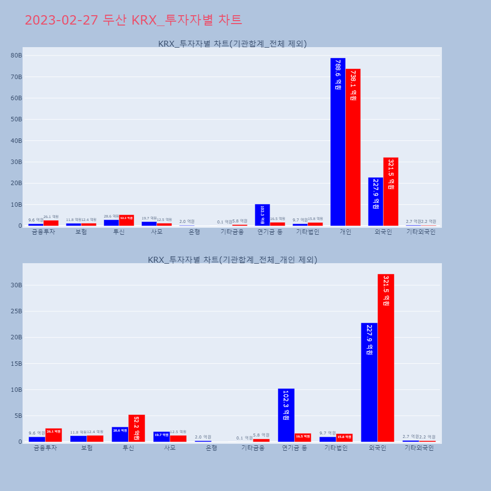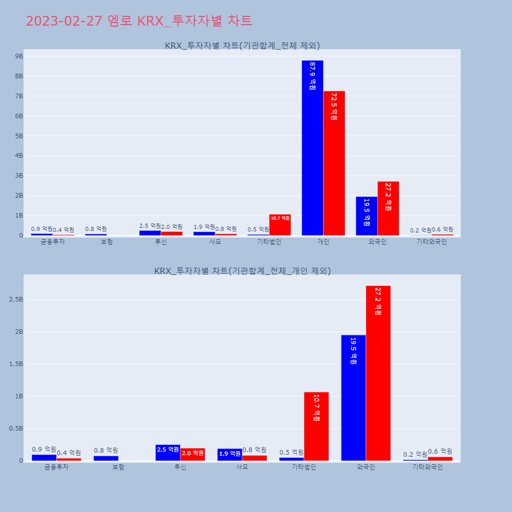 | 연기금 등 | 102,954 | 16,716 | -86,238 | 10,227,995,100 | 1,649,432,900 | -8,578,562,200 |