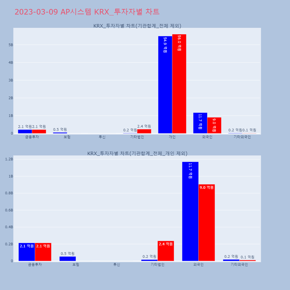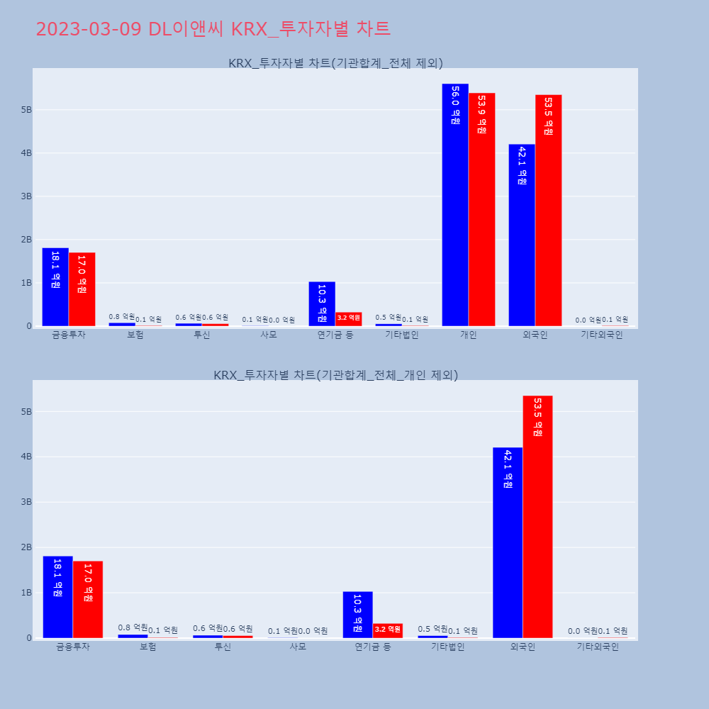 | 투자기관 | 거래량_매도 | 거래량_매수 | 거래량_순매수 | 매도(백만) | 매수(백만) | 순매수(백만) |