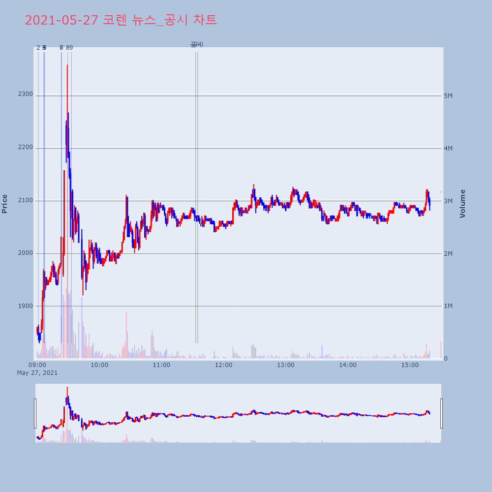 2 | 7 | 코렌, +11.85% VI 발동코렌(078650)이 VI가 발동했다. 전일 대비 11 | 조선경제 | 코렌 | 2021-05-27 09:23:31 |